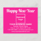 Alles Gute zum neuen Jahr! Ein Neuanfang. Ein Neubeginn. Feiern Sie diesen Januar und werben Sie auch für Ihr Geschäft. Postcard Karte, die Sie anpassen können, um Ihre geschäftliche Marke und mit Neujahr Gruß. Passen Sie es an und nutzen Sie es, um Ihre Kunden oder Kunden in diesem neuen Jahr zu begrüßen und als Marketing-Material, um Ihr Unternehmen zu werben oder Ihren Markennamen zu fördern. Anpassbare Postkarte, mit der Sie Markenbewusstsein schaffen können. Designfarben sind weiße Texte auf rosa Hintergrund. Um diese Postkarte anzupassen, laden Sie Ihr Firmenlogo hoch, geben Sie Ihren Firmennamen, Ihre Adresse, Telefonnummer, E-Mail und Website oder Ihre Social Media-Seite ein. Bitte Karo des Erscheinungsbildes nach dem Hochladen von Logos und Schriftzeichen. Wenn Ihnen das Aussehen gefällt, können Sie jetzt Ihre Bestellung aufgeben. Wenn Sie das Logo und die Texte ändern und verschieben müssen, um auf diese Postkarte zu passen, ändern Sie bitte das Design-Tool. Sie können auch die Hintergrundfarbe, die Farbe des Schriftartes und den Stil des Schriftartes im Designwerkzeug ändern. Alles Gute zum neuen Jahr! Wir wünschen Ihnen mehr Umsatz in diesem Urlaub und den kommenden Jahren.