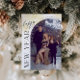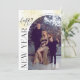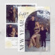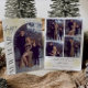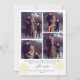 Diese Weihnachtskarte zeigt vorne ein gebogenes Foto und auf der Rückseite 4 Fotos. Für dieses Design sind "Frohes Neues Jahr" und "all unsere Liebe" nicht editierbar, aber aller anderer Text kann angepasst werden.