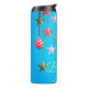Der Thermal Tumbler in Silber, Gold und Mitternachtsblau symbolisiert die Spannung und Eleganz des kommenden Jahres. In der Mitte oder in prominenter Darstellung wird der Satz "Bonjour 2024" wunderschön in stilvoller, festlicher Schrift geschrieben, die ein Gefühl von Freude und Vorfreude für das kommende Jahr ausstrahlt.