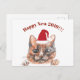 Niedliche Katze mit Weihnachtsmannmütze Neujahr benutzerdefinierte Text Grußkarte.