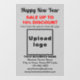 Alles Gute zum neuen Jahr! Ein Neuanfang. Ein Neubeginn. Feiern Sie diesen Januar und werben Sie auch für Ihr Geschäft. Anpassbare Fensterklemme mit Neujahrsverkauf, Ihrem Firmennamen und anderen Informationen. Fensterheber, die Sie als Marketing-Material verwenden können, um mehr Kunden anzuziehen. Anpassen und anzeigen, um mehr Kunden davon zu überzeugen, Ihre Produkte oder Kunden zu kaufen, um Ihre Dienstleistungen zu mögen. Designfarben sind schwarze und rote Texte auf grauem Hintergrund. Inhalte sind glücklicher Neujahrsgruß, Verkaufstexte mit prozentualem Rabatt, die Sie anbieten, Verkaufstermine, Ihr Firmenname, Logo, Adresse, Telefonnummer, E-Mail und Website oder Ihre Business Social Media-Seite. Bitte Karo des Erscheinungsbildes nach dem Hochladen von Logos und Schriftzeichen. Wenn Ihnen das Aussehen gefällt, können Sie jetzt Ihre Bestellung aufgeben. Wenn Sie das Logo und die Texte ändern und verschieben müssen, um sie auf diese Fensterklemme oder auf die gewünschte Größe und Form zu passen, ändern Sie bitte das Design-Tool. Sie können auch die Hintergrundfarbe, die Farbe des Schriftartes und den Stil des Schriftartes im Designwerkzeug ändern. Alles Gute zum neuen Jahr! Wir wünschen Ihnen mehr Umsatz in diesem Urlaub und den kommenden Jahren.