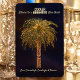 Digitales Foto einer Palme, bedeckt mit Lichtern in Strandnähe. Zwei Vorlagen Felder, eines für das neue Adjektiv für Neujahr, und das andere Ihre Unterschrift.