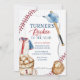 Diese editierbare digitale Einladung enthält Wasserfarbillustrationen eines Baseballschlägers, einer Mütze, eines Jerseys und eines Handschuhs und kombiniert klassischen Americana-Charme mit einer modernen Note.
