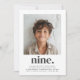 Eine moderne 9. Geburtstagsveranstaltung mit eigenem Foto und dem Wort '9.' darunter. Sie können auch alle Textfarben und -stile bearbeiten - klicken Sie einfach auf die Schaltfläche 'Personalisieren' -> 'Bearbeiten mit dem Designwerkzeug'.