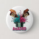 Neurodivergent Autism ADHD Vintage Art Pink Teal Button