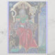 Farbenfrohe, lebendige, zeitgenössische Malerei in Gold, blau, rot, grün, braun . Ein mysteriöser hypnotischer Zauberer mit eleganten Kostümen aus rotem Samt mit einer magischen Kugel, die auf einem gotischen Thron mit Gargostilen und einer Eule sitzt. Ambient ist surreal, fantastisch, alchemisch, wo Sie sehen, wie ein Jester aus einer Tasse trinkt, ein templare Mönch fliegt auf einem Frosch, transparente Blasen, Fantasielandschaften mit Hölle Feuer, kosmisch blauer Himmel mit Sternen, Berge des Himmels, Bäume .Egg Tempera auf Holzplatte mit goldener Folie. 1989 , Miniatur Made mit malerischen Techniken von 1300 von Alessandro Lumini (c) Es ist auch ein schönes Fantasy-Design für Weihnachten, Feiertag, Geburtstag, Silvester Tag, Mardi Gras und Karneval Grüße.