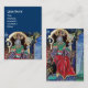 Farbenfrohe, lebendige, zeitgenössische Malerei in Gold, blau, rot, grün, braun . Ein mysteriöser hypnotischer Zauberer mit eleganten Kostümen aus rotem Samt mit einer magischen Kugel, die auf einem gotischen Thron mit Gargostilen und einer Eule sitzt. Ambient ist surreal, fantastisch, alchemisch, wo Sie sehen, wie ein Jester aus einer Tasse trinkt, ein templare Mönch fliegt auf einem Frosch, transparente Blasen, Fantasielandschaften mit Hölle Feuer, kosmisch blauer Himmel mit Sternen, Berge des Himmels, Bäume .Egg Tempera auf Holzplatte mit goldener Folie. 1989 , Miniatur Made mit malerischen Techniken von 1300 von Alessandro Lumini (c) Es ist auch ein schönes Fantasy-Design für Weihnachten, Feiertag, Geburtstag, Silvester Tag, Mardi Gras und Karneval Grüße.