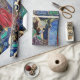 Farbenfrohe, lebendige, zeitgenössische Malerei in Gold, blau, rot, grün, braun . Ein mysteriöser hypnotischer Zauberer mit eleganten Kostümen aus rotem Samt mit einer magischen Kugel, die auf einem gotischen Thron mit Gargostilen und einer Eule sitzt. Ambient ist surreal, fantastisch, alchemisch, wo Sie sehen, wie ein Jester aus einer Tasse trinkt, ein templare Mönch fliegt auf einem Frosch, transparente Blasen, Fantasielandschaften mit Hölle Feuer, kosmisch blauer Himmel mit Sternen, Berge des Himmels, Bäume .Egg Tempera auf Holzplatte mit goldener Folie. 1989 , Miniatur Made mit malerischen Techniken von 1300 von Alessandro Lumini (c) Es ist auch ein schönes Fantasy-Design für Weihnachten, Feiertag, Geburtstag, Silvester Tag, Mardi Gras und Karneval Grüße.