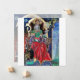 Farbenfrohe, lebendige, zeitgenössische Malerei in Gold, blau, rot, grün, braun . Ein mysteriöser hypnotischer Zauberer mit eleganten Kostümen aus rotem Samt mit einer magischen Kugel, die auf einem gotischen Thron mit Gargostilen und einer Eule sitzt. Ambient ist surreal, fantastisch, alchemisch, wo Sie sehen, wie ein Jester aus einer Tasse trinkt, ein templare Mönch fliegt auf einem Frosch, transparente Blasen, Fantasielandschaften mit Hölle Feuer, kosmisch blauer Himmel mit Sternen, Berge des Himmels, Bäume .Egg Tempera auf Holzplatte mit goldener Folie. 1989 , Miniatur Made mit malerischen Techniken von 1300 von Alessandro Lumini (c) Es ist auch ein schönes Fantasy-Design für Weihnachten, Feiertag, Geburtstag, Silvester Tag, Mardi Gras und Karneval Grüße.
