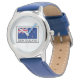 Kinderuhr aus Edelstahl mit blauem Lederarmband