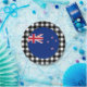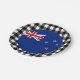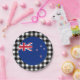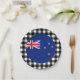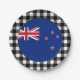Teller: Rustikale neuseeländische Party-Teller mit neuseeländischer Fahne, umgeben von schwarz-weißem Büffel-kariertes Muster - Liebe mein Land, festliche Dekoration, nationale Patrioten / Sportfans