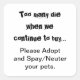 Zu viele Die, wenn Wir.. Kaufen Bitte Spay/Neuter Aufkleber Adoptiert: Die Überbevölkerung von Haustieren ist weltweit ein ernstes Problem. Bringt es dir das Herz, Hunde, Katzen und andere Tiere zu sehen, die in Tierläden gezüchtet und verkauft werden, wenn so viele Haustiere in Tierheimen leben, die Zuhause brauchen? Bringt es Ihnen das Herz, geboren ungewollte Welpen und Kätzchen zu sehen, weil Menschen, die nicht gewollt haben, sich die Mühe zu machen, Mama- und Papa-Hunde, Katzen und andere Tiere zu spucken und zu kastrieren? Nun, dieses Design ist für Sie! Text ist "Zu viele die, wenn wir weiterhin kaufen ... Bitte Adoptier und spay/neuter deine Haustiere."