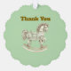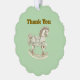 Show your appreciation with this editable baby shower thank you paper ornament, designed to coordinate beautifully with the “Sweet news is in the air” collection. Featuring a charming rocking horse, soft pastel green, beige, and warm brown tones and a ribbon for hanging, this ornament makes a heartfelt keepsake for guests.