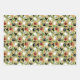 A set of wrapping paper sheets for Halloween featuring three cute patterns: one with cats, pumpkins, skulls, bats, toadstools, witch hats, and leaves against a neutral background; the same pattern against an olive green background; and one sheet with matching stripes.