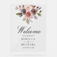 Elegant wedding welcome sign featuring beautiful flowers and modern typography.