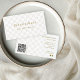 Diese elegante Visitenkarte bietet einen hellen, karierten Hintergrund mit Goldtext. Fügen Sie Ihren Firmennamen und Ihre Tagline an die Vorderseite des Gebäudes mit einem eleganten serif Schriftart. Ihre Geschäftsadresse und Kontaktinformationen, einschließlich Social Media und Icons, und QR Code auf der Rückseite. Ideal für persönliche Marken, Boutiquen und mehr.
