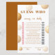 This design was inspired by soft golden balloons floating around a joyful celebration. The warm neutral palette and clean modern layout give this game card an elegant feel, making it a fun and stylish way for guests to guess who said what—mommy or daddy.