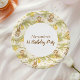 A soft and charming safari-themed design featuring gentle watercolor animals surrounded by delicate wildflowers and botanical greenery. Sweet lions, giraffes, elephants, and zebras create a whimsical storybook scene in warm neutral tones of beige, cream, and soft sage. The elegant arch layout and botanical details give this design a timeless and refined look, perfect for celebrating a little one’s special first birthday.