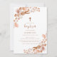 Feiern Sie die Taufe mit diesem eleganten boho neutralen Terrakotta kleine Wildblume Thema, Taufe Einladung mit einem modernen minimalistischen einfachen Aquarell rustikalen boho Blüte mit einfachem Kreuz.
