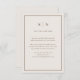 These elegant, modern neutral wedding guest detail cards feature a simple warm, creamy white minimalist text design with your initials or monogram and a classic brown frame. You can use these cards for driving directions, reception or transportation information, hotel or accommodations information, and any other wedding details you need your guests to know.