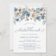 Diese trendige und schöne Bridal-Brunch-Einladung mit Aquarellfarben-Blume in neutralen, beigen, Elfenbein- und staubblauen Farbtönen und eleganter blauer Kalligraphie-Schrift.