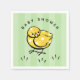 Die Babyduschservietten sind mit einem niedlichen, gelben Küken mit weißen Polka-Punkten ausgestattet. Geschlechtsneutraler Hintergrund sind grüne Streifen. Der Text auf der Vorderseite lautet "Baby Shower".