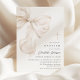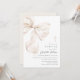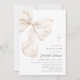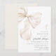 Minimale Taufeinladung mit eleganter neutraler beiger Schleife und eleganter Typografie.