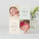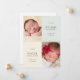 Teilen Sie die Geburt Ihrer Zwillinge mit dieser modernen, minimalistischen Geburtsankündigung. Auf der Vorderseite der Karte befindet sich neben dem Namen und den Geburtsdaten ein Foto jedes Babys, das auf einem weichen, gelben und grünen Hintergrund steht. Fügen Sie auf der Rückseite eine persönliche Nachricht hinzu, einschließlich des Datums, an dem die Zwillinge geboren waren.