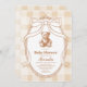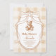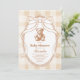 Neutrale Gingham Teddy Bear Baby Shower Einladung