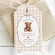 Neutrale Gingham Teddy Bear Baby Shower Geschenkanhänger
