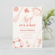 Ahoy! Es ist eine Baby-Dusche, Babydusche Nautical, Fisherman Babydusche Thema, feiern bevorstehende Babydusche mit unserem pastellorangefarbenen rustikalen modernen Aquarellboot, Anker, Rad, Boot, lebensrettenden Gummiring, Krabbe in beige Creme, Rückseite mit pastellorangefarbenen Streifen Muster. Sie können Ihren eigenen Text und Ihre eigene Farbe durch "Personalisieren Sie dieses Design" personalisieren.