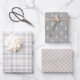 Ein Set von abgestimmten Geschenkfolien in neutralen Erdtönen, einschließlich Weihnachtsbäumen, karierten und Schneeflocken. Ideal für Geschenkverpackungen oder handwerkliche Projekte.