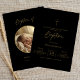Die Oval Foto Black & Gold Gender Neutral Taufe Einladung - perfekt um die Taufe Ihres Babys im Stil zu feiern. Dieses einladende Hotel besticht durch ein elegantes ovales Foto, das in luxuriösem Schwarz und Gold gerahmt ist und moderne minimalistische Typografie mit eleganter Kalligrafie verbindet. Es ist sowohl für Jungen als auch für Mädchen konzipiert und ist die ideale Wahl für eine geschlechtsneutrale Feier.