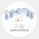 Unser minimalistischer Baby-Duschaufkleber, mit Aquarellwinterberg, Pinienbäume und Polarbärenabbilden, bietet minimalistische, einfache, Baby-Dusche-Einladungen für das Baby, die im Winter erwartet werden. Design für Babys und Mädchen.