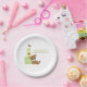 Neutraler Bär und Spielzeug blockiert Babydusche Pappteller