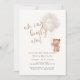Minimalistisch Boho We Can Bearly Wait Baby Shower Einladungen, Design-Feature Aquarell Teddy Bär mit Bugs Krawatte und neutrale Farbe Boho Ballon in Creme, Beige, Gold, Bräune, Farbe Schemata. Bewundern Sie die Babydusche mit diesem geschlechtsneutralen Design, das sich perfekt für Jungen und Mädchen eignet. Dieses Design ist auch perfekt für Baby erwartet im Sommer, Herbst, Frühling und Winter.