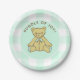 Diese Teller mit einer süßen Babydusche sind mit einem niedlichen Teddybär mit einem Minzgrün versehen. Der Hintergrund ist minzgrün mit einem Minzgrün-weißen Büffel-Karo. Im Text steht "Bündel der Freude". Ideal für geschlechtsneutrale Babyduschen.