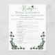 Dieses geschlechtsneutrale St Patrick's Day oder Irish Baby Shower Spiel heißt "Baby Word Scramble". Das Design: Diese in schwarz gezeichnet Karte mit handgezeichnet, Vintag inspiriert Eckdetails und schönen grünen Kleeblättern, die alle auf einem eleganten, knusprigen, weißen Hintergrund gehalten sind. Spielen: Jeder Gast erhält eine Karte und einen Bleistift. Die erste Person, die die Liste auflöst, oder die Person mit den korrektesten Antworten gewinnt das Spiel. Wenn Sie dieses Spiel kaufen wollen, hier ist der Answer Key: 1. Decke 2. Flasche 3. Puppe 4. Schaukelstuhl 5. Formel 6. Hochstuhl 7. Stollen 8. Mommy 9. Teddy Bär 10. Schnuller 11. Neugeborene 12. Bassette 13. Hintern 14.Cradle 15.
