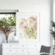 Eine moderne Kunst aus dem Spiel abstrakter Pinselstriche und Details in gemischten Medien, inspiriert vom Frühling, macht dieses cool neutrale minimalistische Poster mit einem weichen Muster aus grün, Elfenbein, weiß, Terrakotta und grau zu einer faszinierenden Kombination, die Ihrem Umfeld ein Gefühl der Frische verleiht.