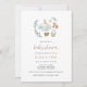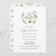Feiern Sie die Eltern mit dieser niedlichen geschlechtsneutralen Babydusche-Kollektion, die eine Aquarelldarstellung des ersten Outfits und Vintagen Spielzeugs enthält, die von Eukalyptus-Blätter und einem passenden Muster auf der Rückseite umgeben ist.