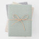 Neutrales Muster-Verpackungspapier, hergestellt in drei verschiedenen minimalistisch abstrakten handzeichnend Motiven, Salbei grün, Beige und Grau.