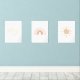 Richten Sie die passenden Wolken-, Regenbogen- und Sonnendrucke im Raum Ihres kleinen Kinderzimmers aus.