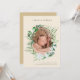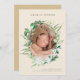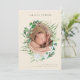 Schöne vertikale Geburtsankündigung mit Foto, individuell anpassbare Geburtenstatistiken und eleganten grünen Aquarellkranzdetails. Geschlechtsneutraler Pastellstil für Jungen und Mädchen.