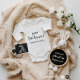 Feiern Sie Ihre freudigen Neuigkeiten in einem charmanten und minimalistischen Stil mit diesem bezaubernden schwangeren Ankündigungsdesign. Mit einem niedlichen Hasen, der neben einem weißen Baby-Bodysuit ein Briefbrett hält, ist diese süße Einrichtung der perfekte Weg, um Ihre spannenden Neuigkeiten zu erzählen. Schwangerschaftsankündigung, minimale Schwangerschaftsoffenbarung, sonnige Ankündigung, Babyankündigung, Brieftafel, niedliche Schwangerschaftsabsage, einfache Schwangerschaftsankündigung, Kinderankündigung, adorable Schwangerschaftsankündigung.