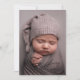 personalisiert mit einem großen Foto auf dem Cover und drei weiteren Fotos auf dem Rücken. Der Name Ihres Babys in einem schwarzen Signaturskript zusammen mit seinem Nachnamen und den Geburtsstatistiken. Schöne neue Baby-Ankündigung, die sowohl für Jungen als auch Mädchen funktioniert.
