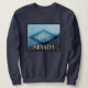Ein digitales Landschaftsbild des Walker Sees in Nevada. In der Mitte des Kunstwerks ist eine blaue Rautenform. In der Mitte dieser Form ist das Jahr der Staatlichkeit, 1864, in Weiß. Auf der Diamantenform klettert eine Zebraeidechse. In großen weißen Buchstaben sitzt NEVADA am Ende des Kunstwerks. Es gibt einen einfachen Rahmen, um die Kunst zu rahmen. Image Copyright ©2023 Kimberly J Tilley.