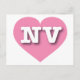 Auf dieser Postkarte befindet sich ein rosa Herz, das die fett-, weiß-, Großbuchstaben NV, die offizielle Abkürzung für Nevada, den silbernen Staat, enthält. Die Rückseite der Postkarte ist leer und wartet auf Ihren personalisierten Text oder Ihre handgeschriebenen Gefühle.