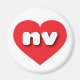Dieser Magnet zeichnet sich durch ein lebendiges rotes Herz aus, das die fett-, weiß-, abgerundeten Kleinbuchstaben nv enthält, eine spielerische Abkürzung für Nevada, den silbernen Staat.