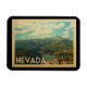 Nevada Design im Vintage Travel Stil mit einem Fluss schlängelt durch die Berge.