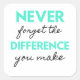 Never Forget The Difference You Make 2 Quadratischer Aufkleber